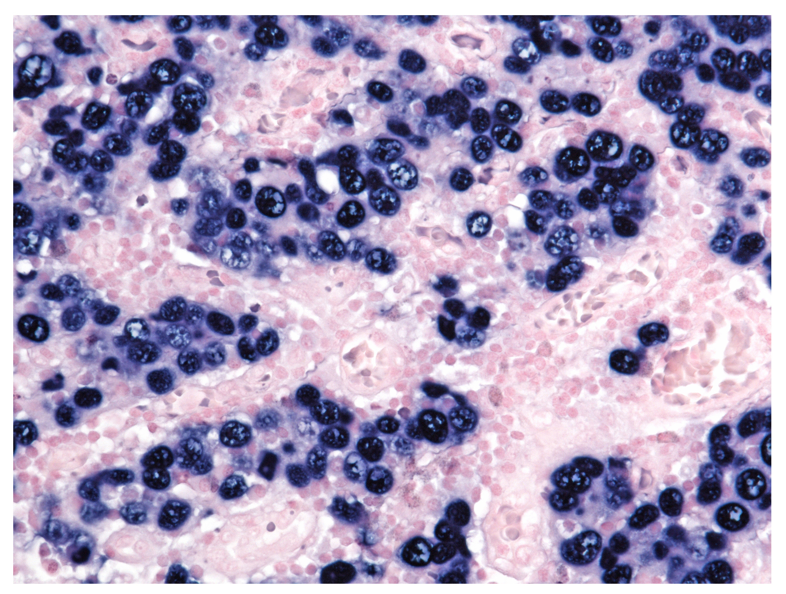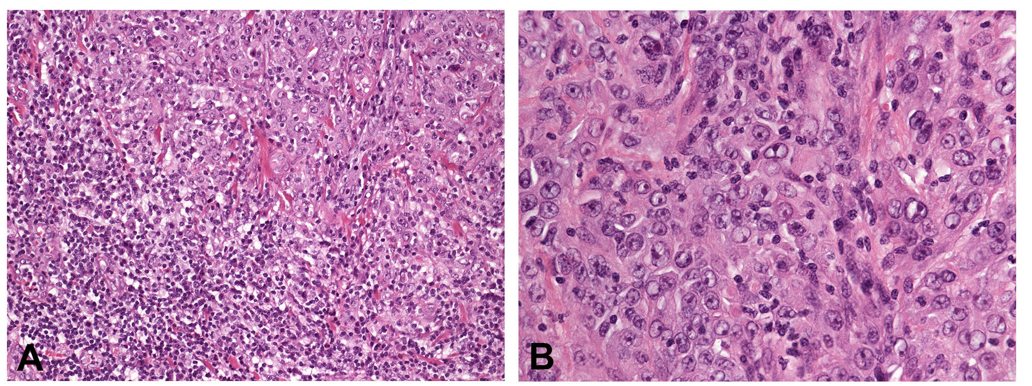 Differential diagnosis mainly includes malignant lymphomas, in particular diffuse large B-cell lymphoma (DLBCL). With the help of immunohistochemistry, however, malignant lymphomas can easily be excluded.